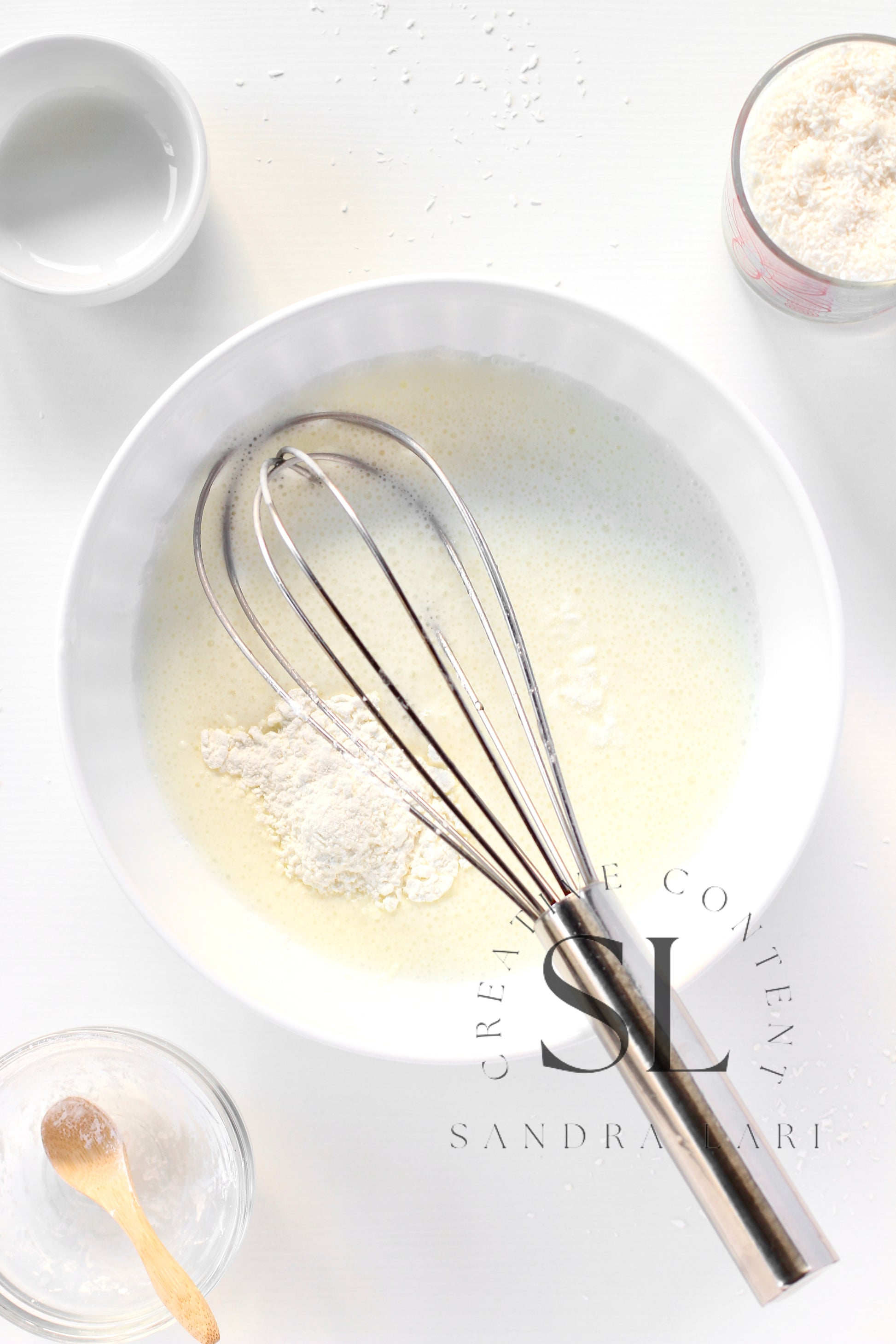 Featured Ingredients: flour type 00, kefir, sugar, shredded coconut, sunflower oil, cornstarch, vanillin powder or vanilla extract, baking soda and salt.