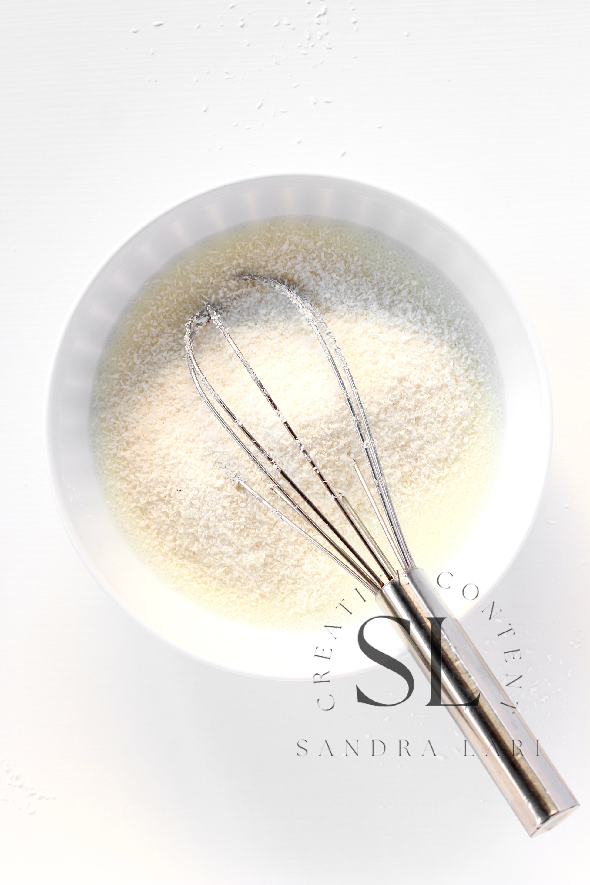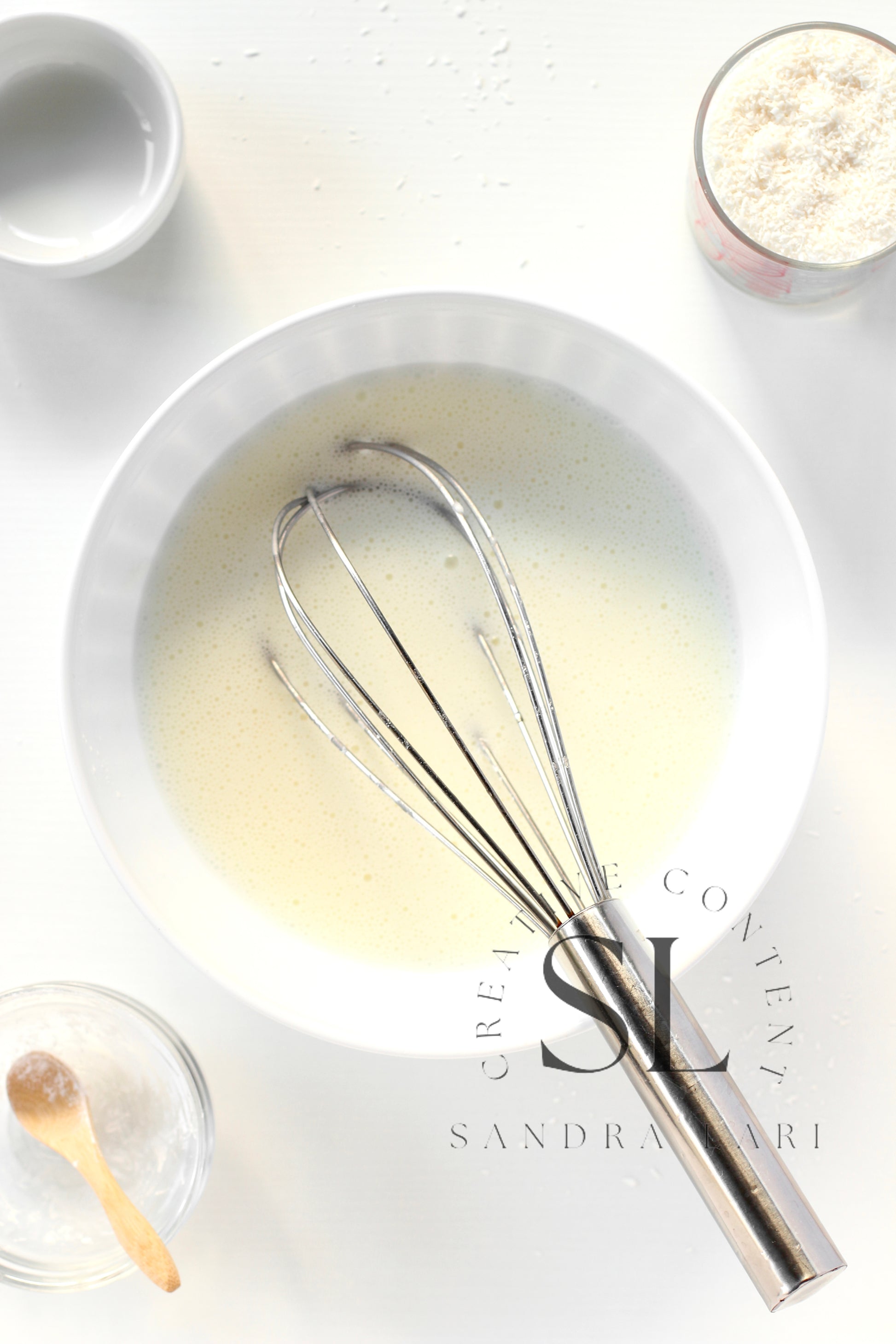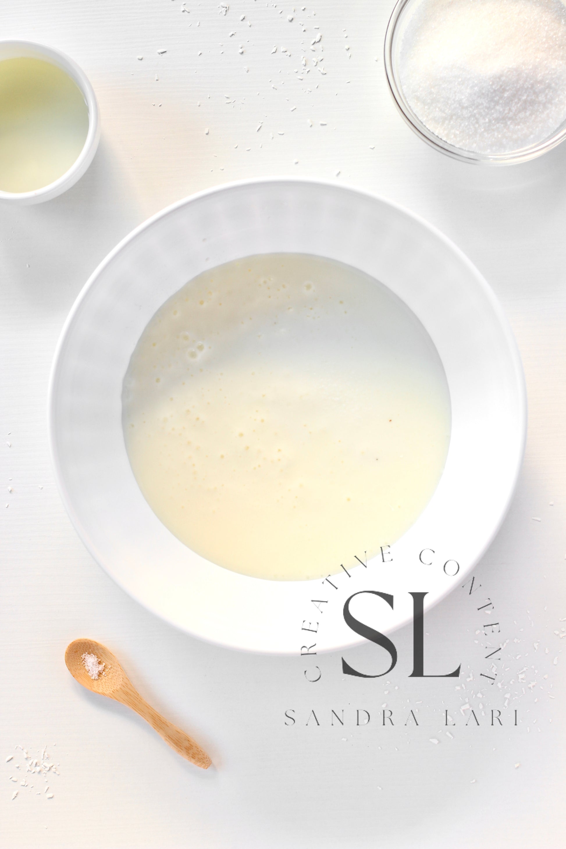 Featured Ingredients: flour type 00, kefir, sugar, shredded coconut, sunflower oil, cornstarch, vanillin powder or vanilla extract, baking soda and salt.
