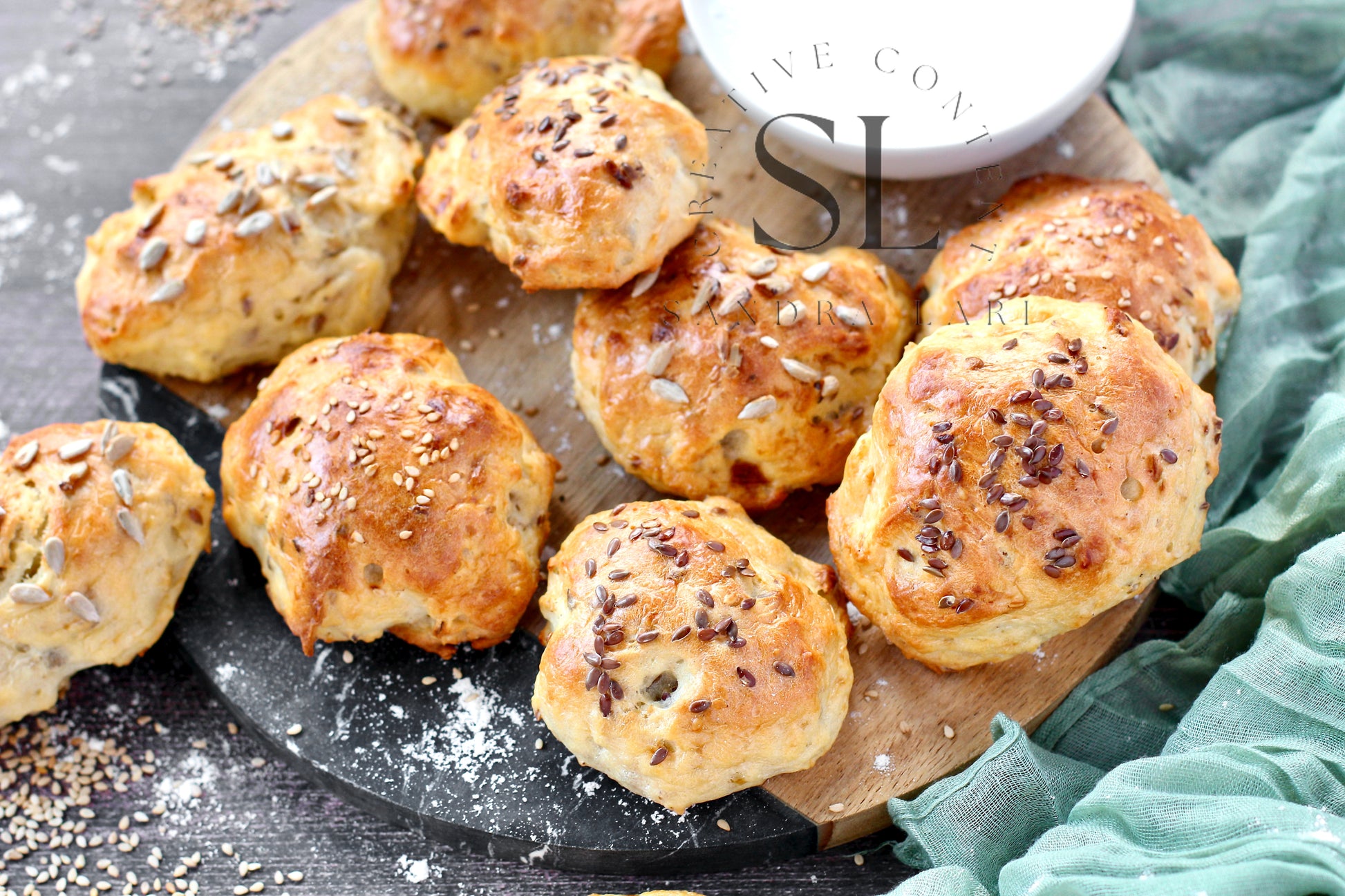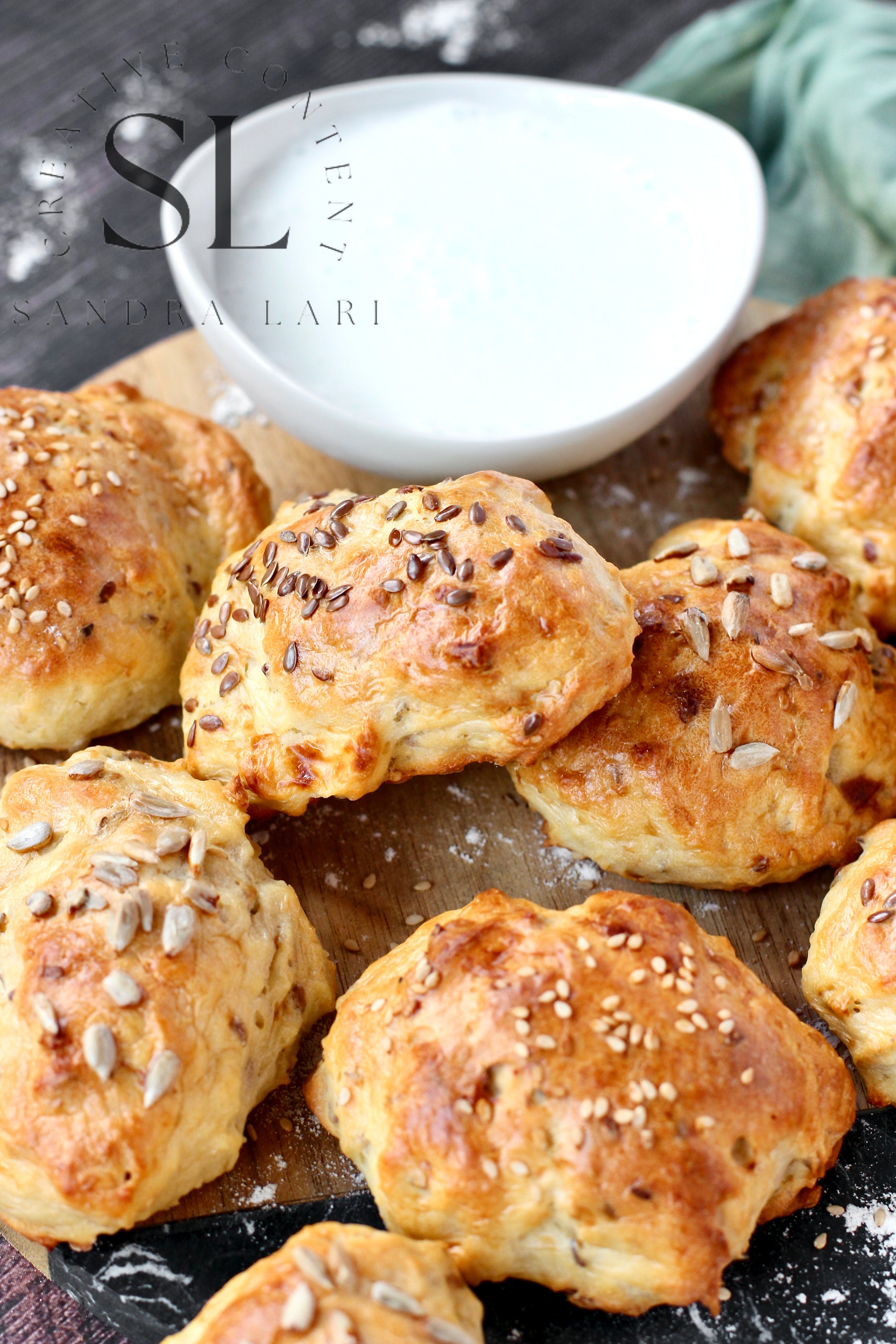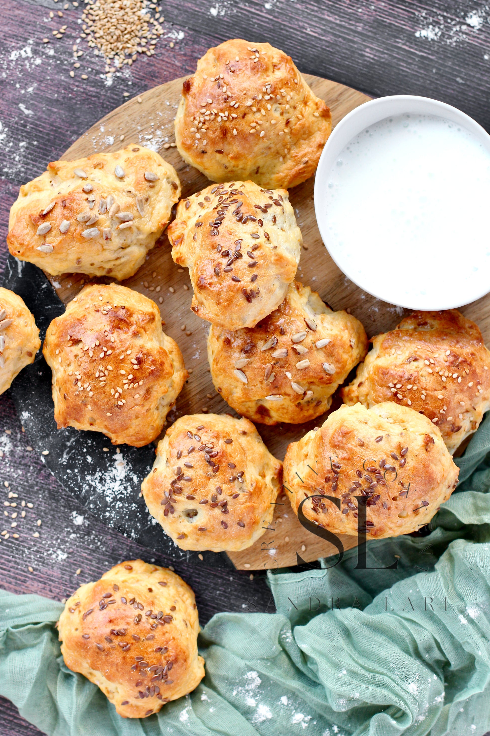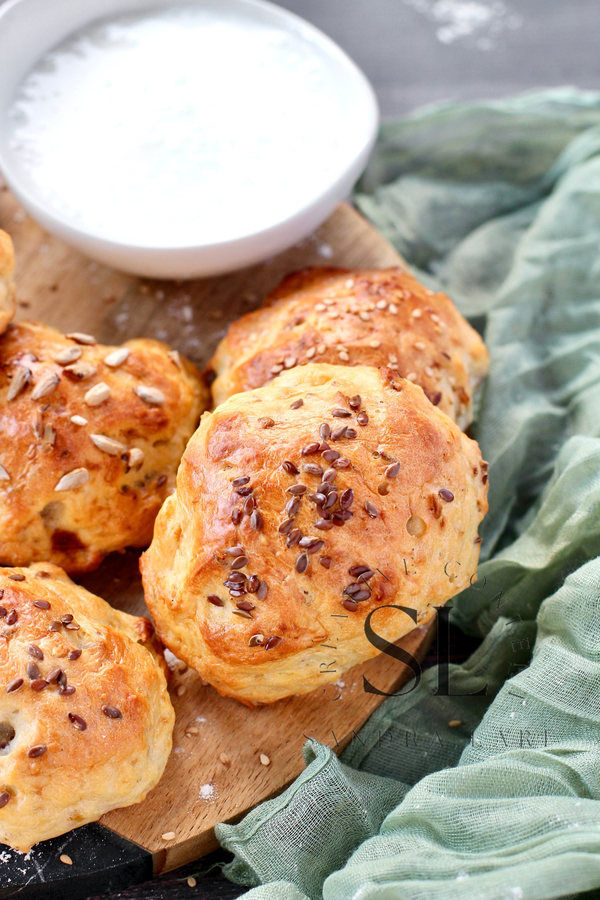 Featured Ingredients: flour type 0, kefir, olive oil, cornstarch, sesame seed, flaxseeds, sunflower seeds, baking soda and salt.