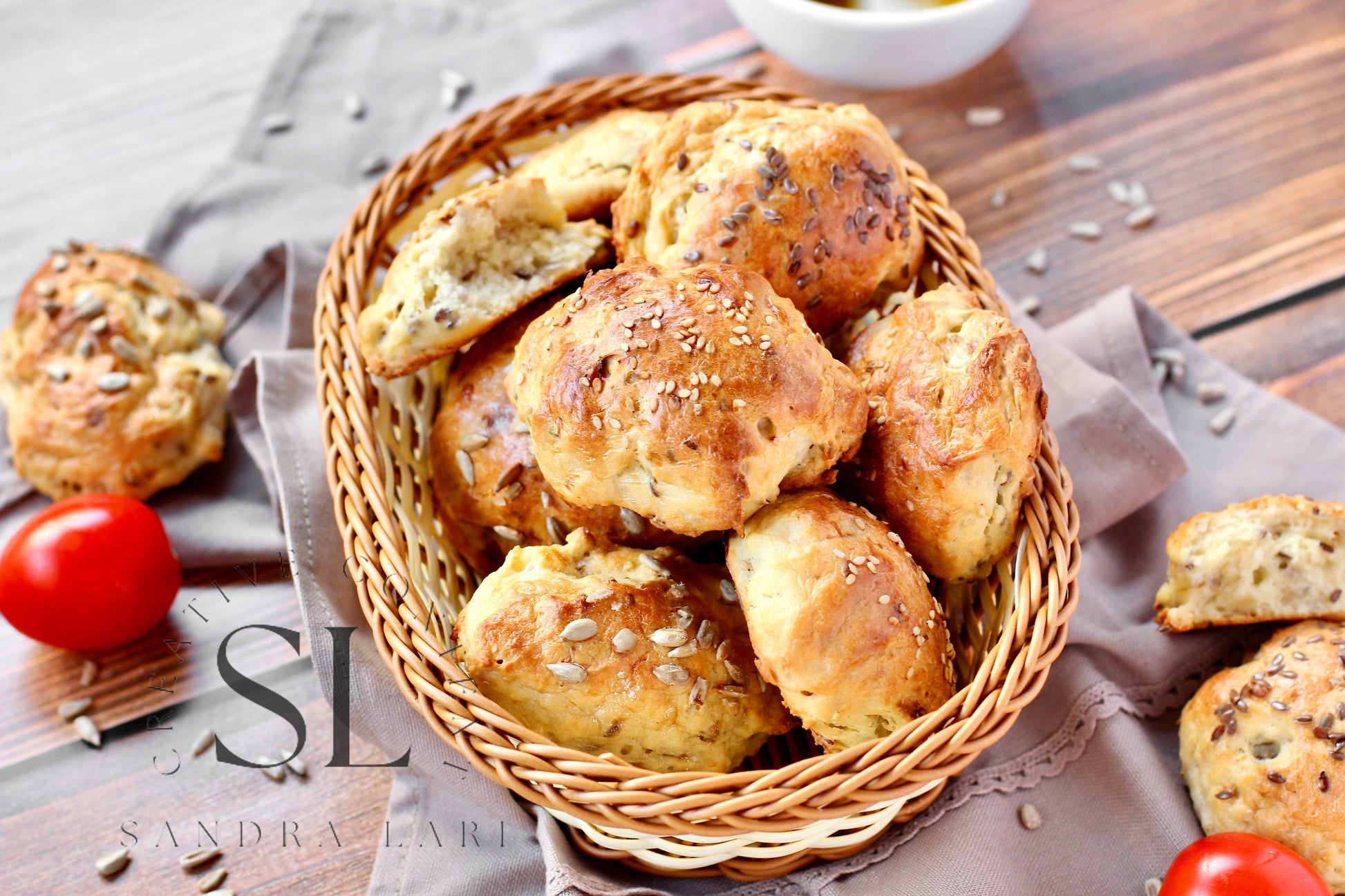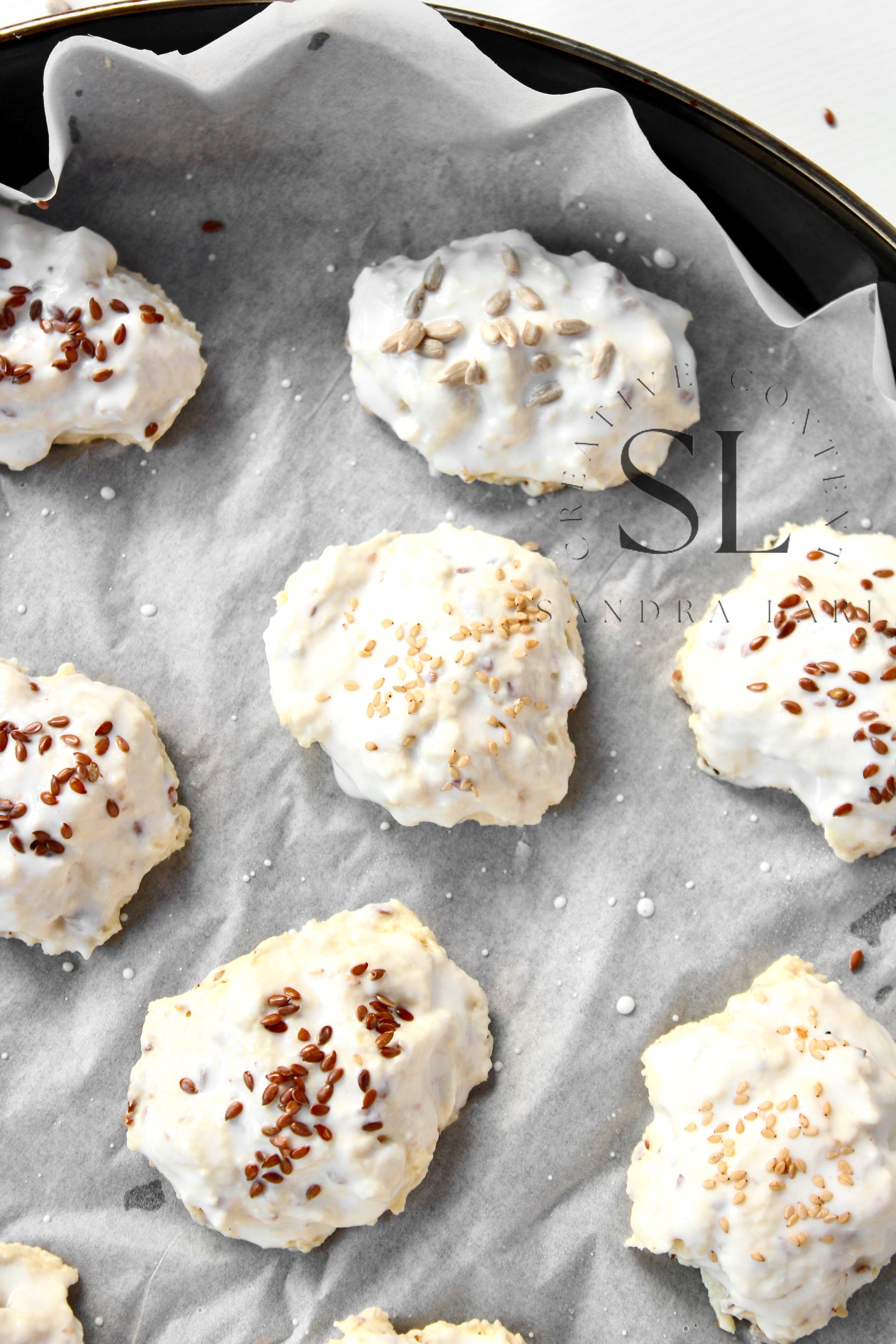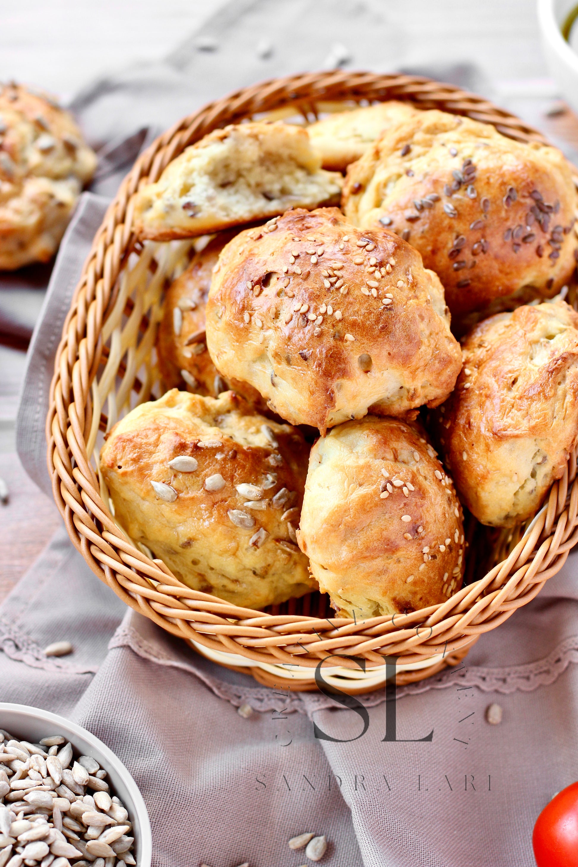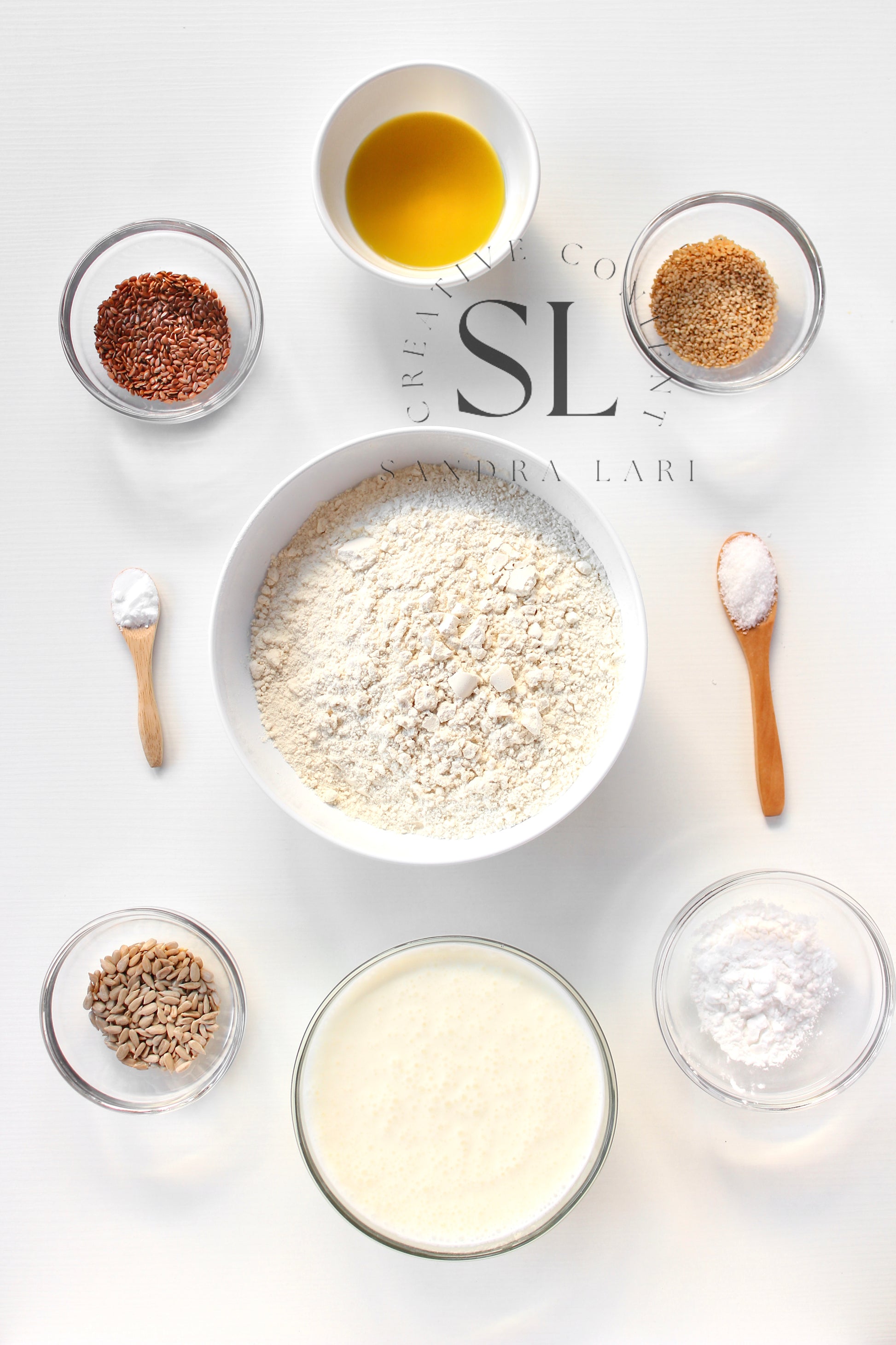 Featured Ingredients: all-purpose flour, kefir, olive oil, cornstarch, sesame seed, flaxseeds, sunflower seeds, baking soda and salt.