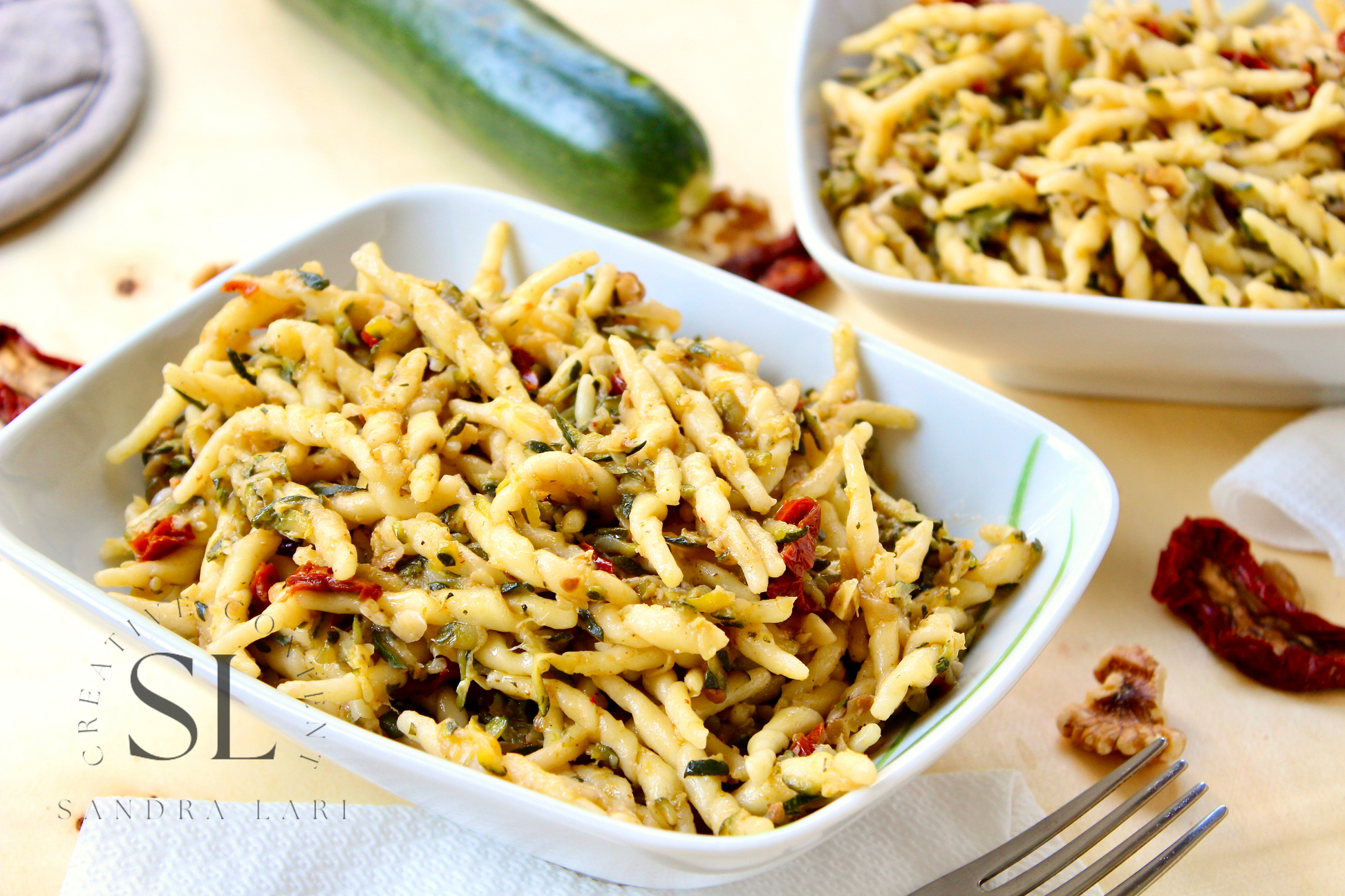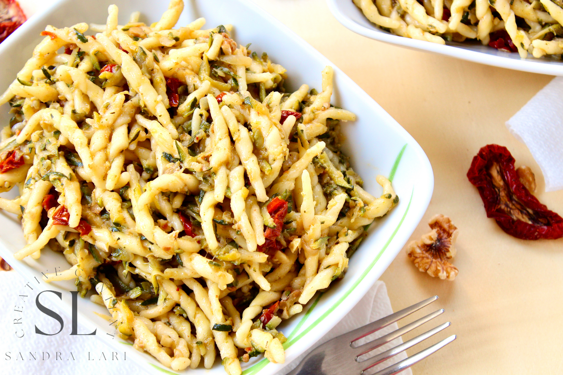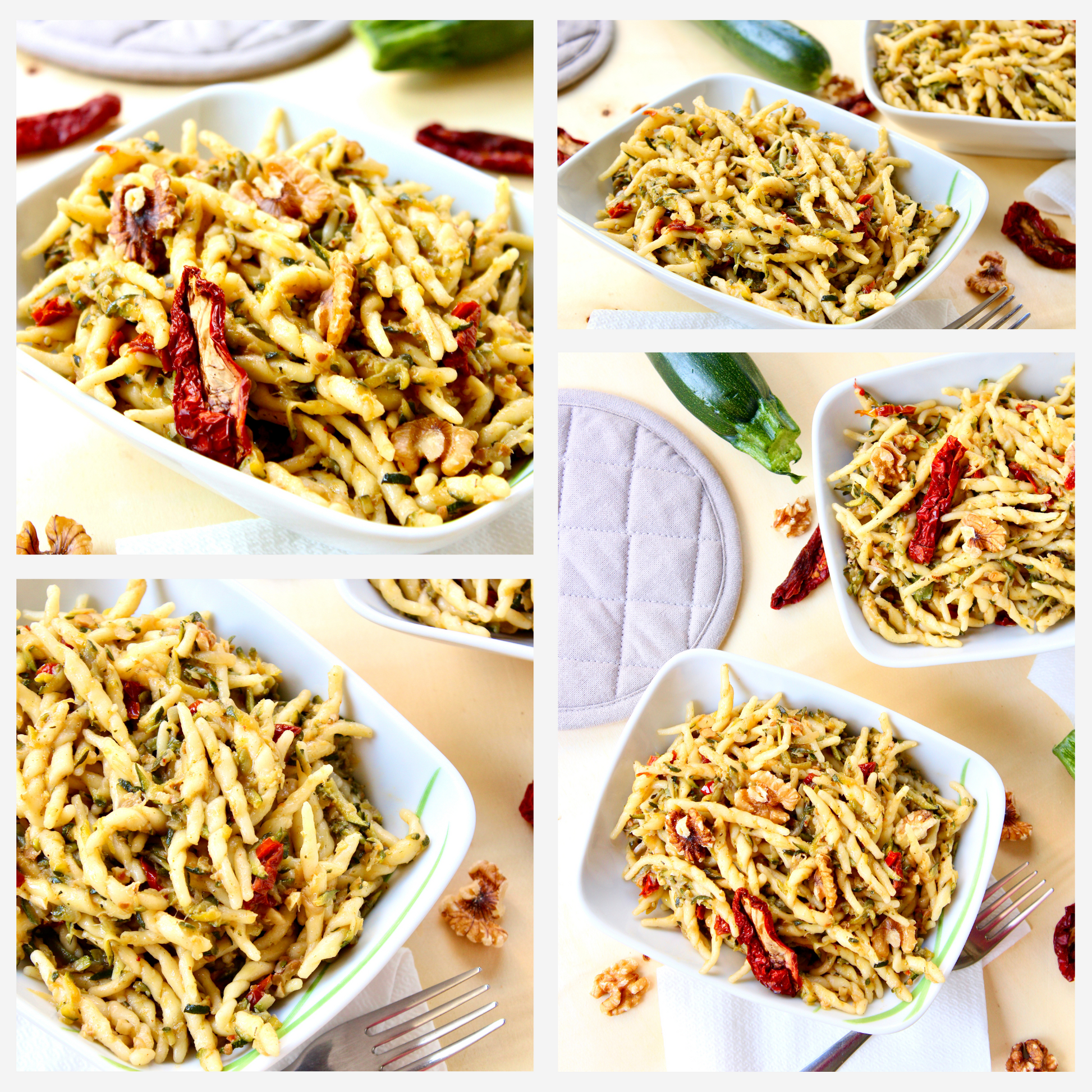 Vegan Pasta with Zucchine, Dry Tomatoes and Walnuts - Set 1 of 3